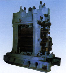| 一.用途 用于將4",6",8"10"鋼錠軋成各種規(guī)格的鋼坯或型材. 二.設(shè)備組成 由主電機(jī).主減速機(jī).人字齒輪機(jī)座和一架或幾架軋機(jī)組成.(下列軋機(jī)是安裝于軋鋼車間中的主機(jī)列.本廠還可以根據(jù)用戶需要配套推鋼機(jī).移鋼機(jī).輥道.升降臺.冷床.剪斷機(jī)等各種輔助設(shè)備.) |